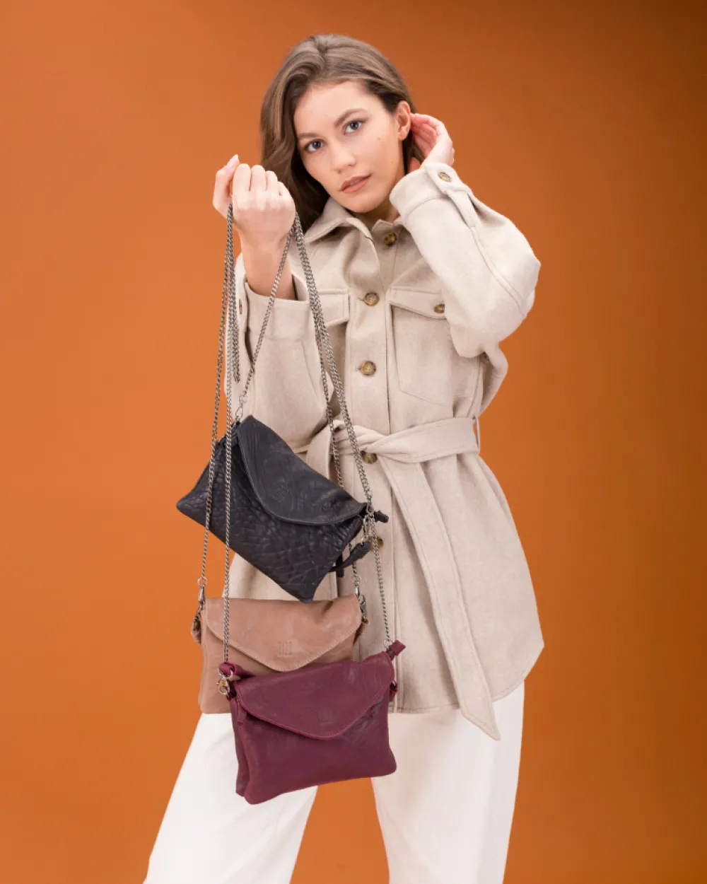 Bolso Pequeno De Piel Ovina Natural Muy Suave. Asa De Mano Extraible. Bandolera Extraiblede Cadena. Bolsillo Con Cremallera En El Dorso. Forro En Sarga De Algodon. El Interiorseparado En Dos Departamentos Y Multiples Bolsillos. Cierre Con Cremallera Y Solapa Con Cierre Magnetico. Referencia: Log1L