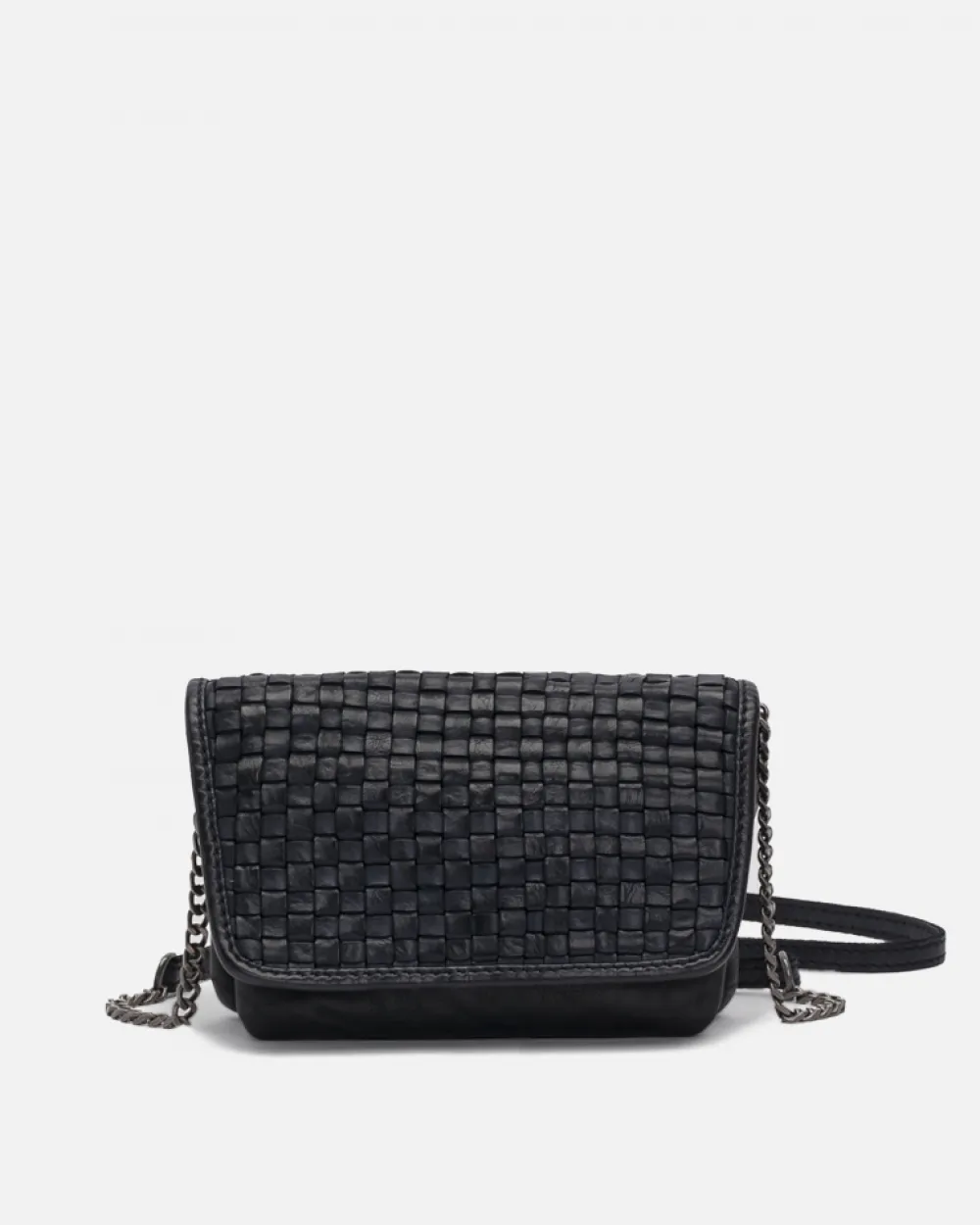 Bolso De Piel De Vacuno Y Solapa Trenzada, Bandolera Con Cadena Y Cierre De Cremallera. Referencia: Loo1L