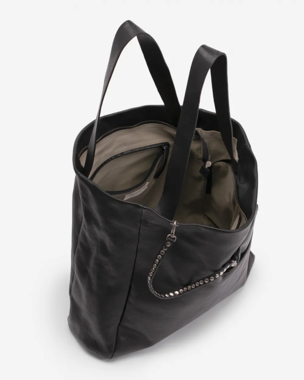 Bolso Shopper De Piel Bovina Natural. Asas De Hombro. Bolsillo En La Parte Delantera. Lleva Colgado Un Pouch De Piel Natural Con Tachuelas Y Cierre De Cremallera Extraible Y Utilizar Solo Poniendo La Tira Como Asa De Mano. Forro En Sarga De Algodon. Multiples Bolsillos En El Interior. Cierre Con Cremallera. Referencia: Bet1L