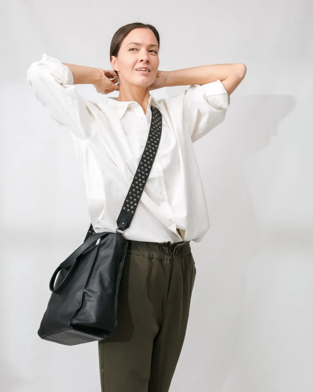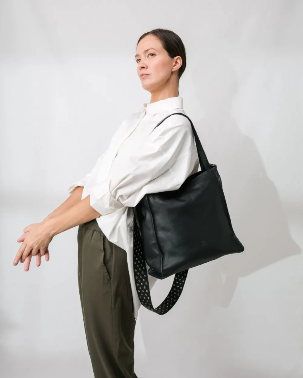 Bolso Shopper De Piel De Vacuna Con Tachuelas En La Bandolera Extraible. Cierre De Cremallera. Referencia: Eas2L