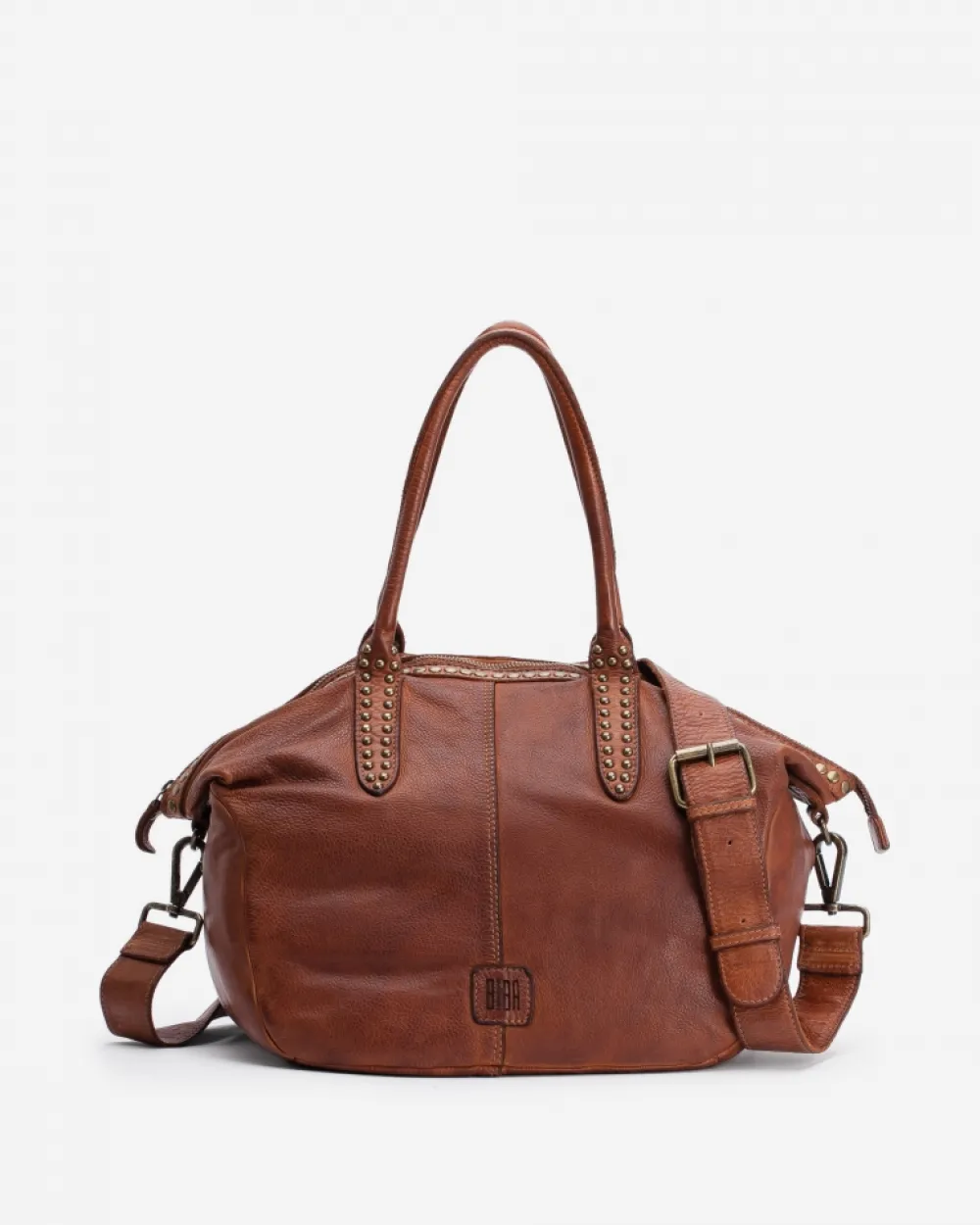 Bolso Shopping De Piel Natural Con Adornos De Tachuelas. Asas De Hombro Y Bandolera Regulable Y Extraible. Forro En Algodon. Cierre Con Cremallera. Referencia: Eug1L