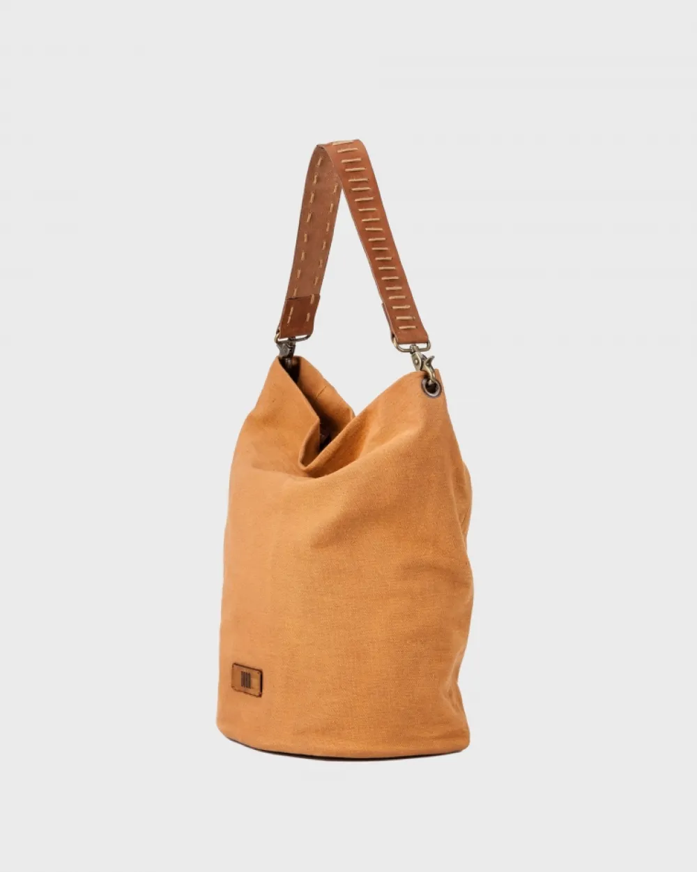 Hobo Mediano Que Mezcla Algod¢N Lavado Con Piel De Bufalo. Asas De Hombro Removible, Y Bandolera Ajustable Y Removible, Ambas Con Despuntes De Algod¢N. Bolsillo Trasero, Y Cierre Con Cremallera. Base Redonda. Referencia: Goo2L