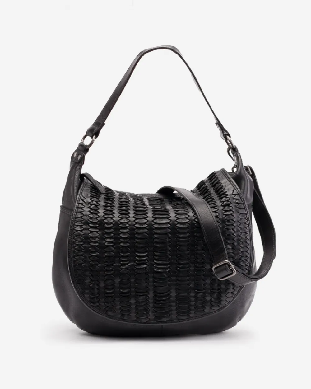 Hobo De Piel Natural, Cortada A Laser Y Trenzada A Mano En La Solapa. Bolsillo Con Cremallera En La Parte Trasera. Asa De Hombro. Bandolera Regulable Y Extraible. Bolsillo En La Parte Frontal, Debajo De La Solapa. Forro De Algodon. Multiples Bolsillos En El Interior. Cierre Con Cremallera Y Solapa Con Automatico. Referencia: Hry1L