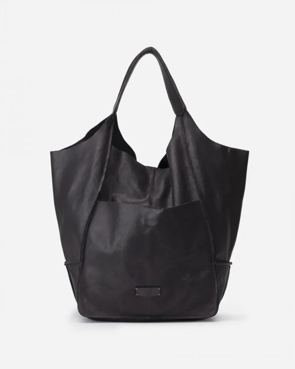 Shopper De Piel Vacuna Lavada, Y De Curticion Vegetal. Cierre Con Boton, Bolsillos Externos E Internos Y Sin Forro De Algodon. Referencia: Hom1L
