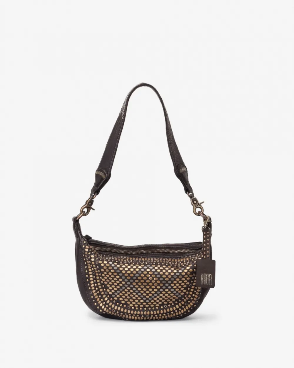 Cross Bag De Piel De Becerro Lavada Y De Curticion Vegetal. Tachuelas Metalicas En La Parte Frontal. Asa De Hombro Y Bandolera, Ambas Extraibles. Cierre Con Cremallera, Bolsillosexternos E Internos Y Forro De Algodon. Referencia: Lot2L