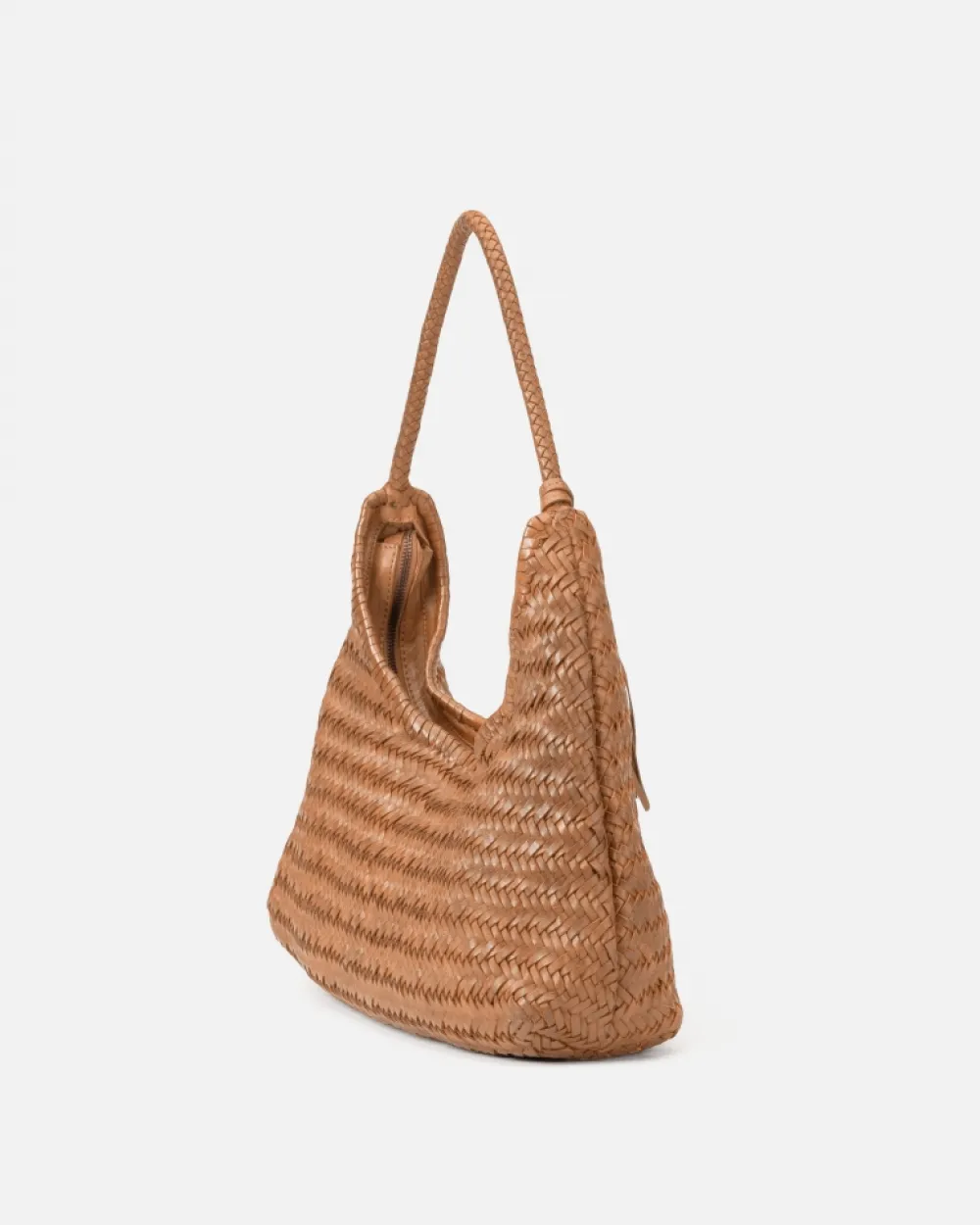Hobo De Piel Vacuna Lavada, Trenzada A Mano Y De Curticion Vegetal. Cierre Con Cremallera, Bolsillos Internos, Y Forro De Algodon. Referencia: Per8L