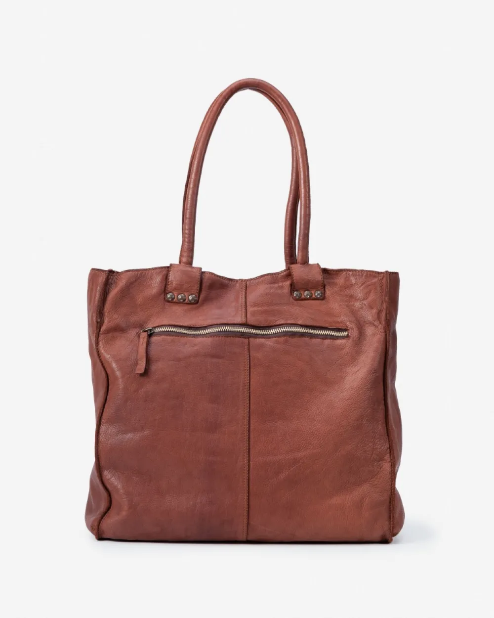 Shopping Grande De Piel Caprina Lavada Y De Curtici¢N Vegetal. Tachas En El Borde Frontal. Bolsillo Trasero, Y Cierre Con Cremallera. Referencia: Por9L