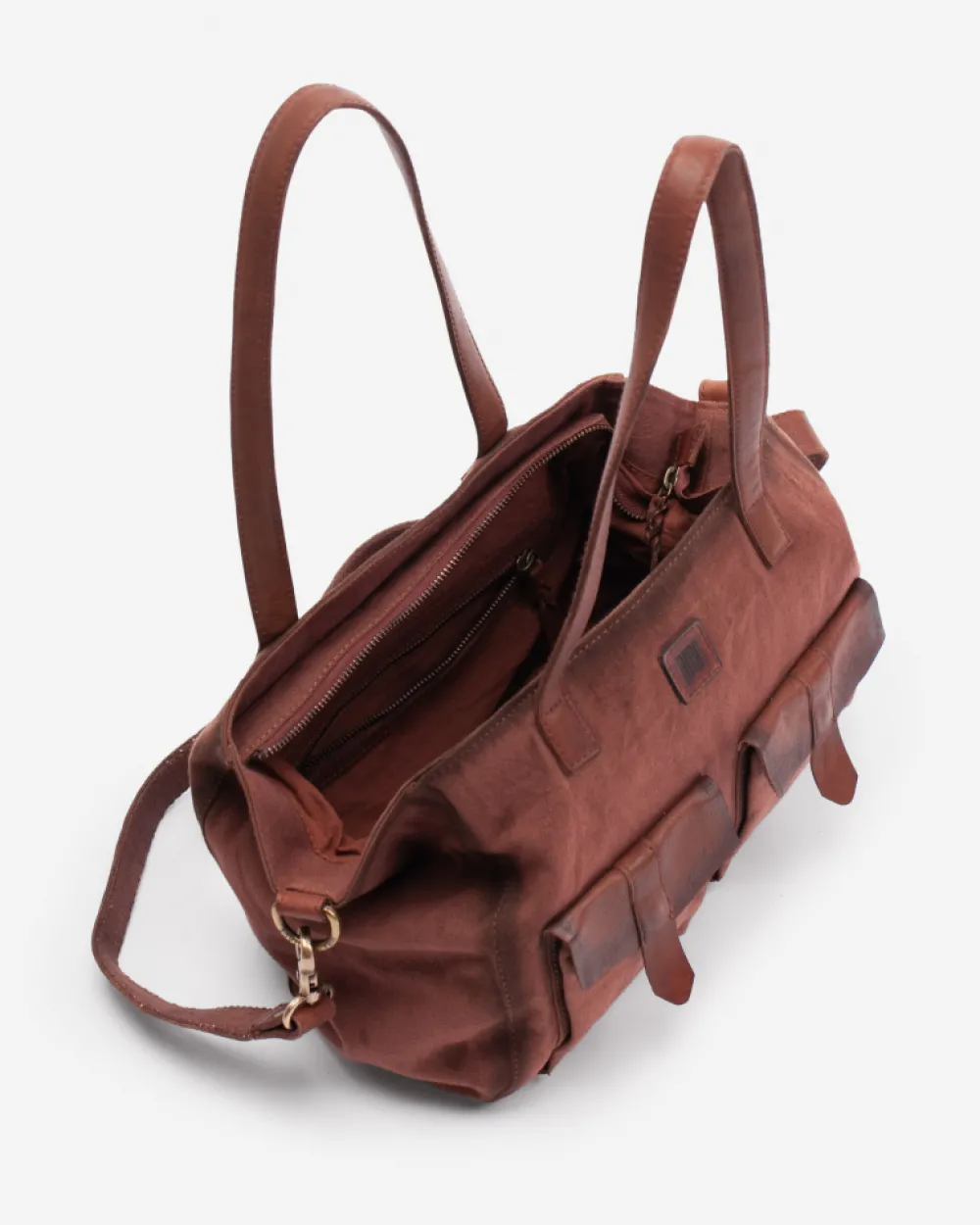 Bolso Shopper En Algodon Efecto Vintage Y Detalles En Piel Natural. Asas De Hombro Y Bandolera Ajustable Y Extraible. En La Parte Frontal Hay Dos Bolsillos Con Cierre Magnetico. En La Parte Detras Hay Un Bolsillo Con Cremallera. Forro En Algodon. Multiples Bolsillos En El Interior. Cierre Con Cremallera. Referencia: Rus2L
