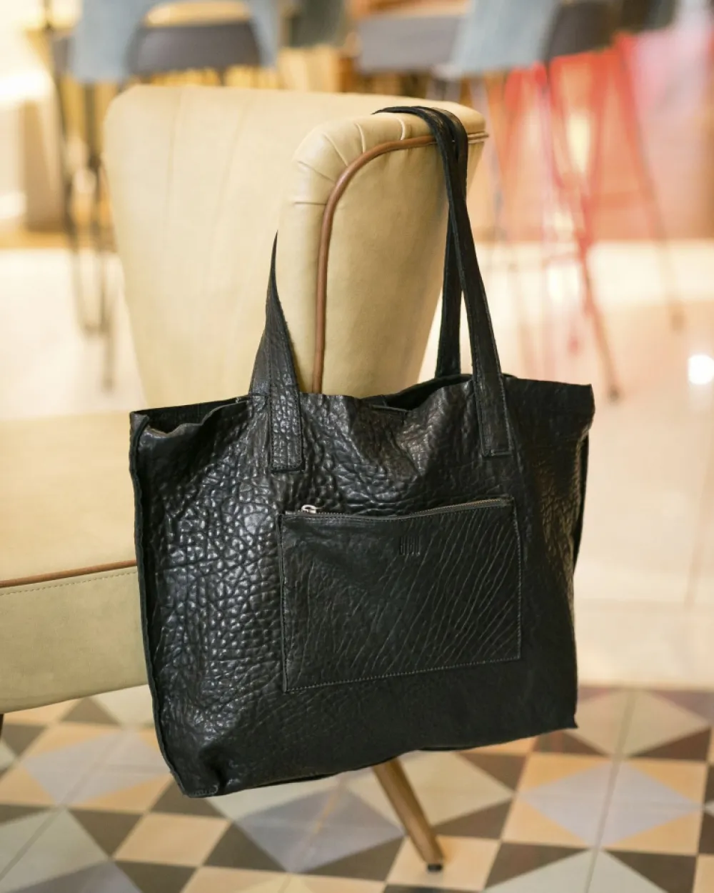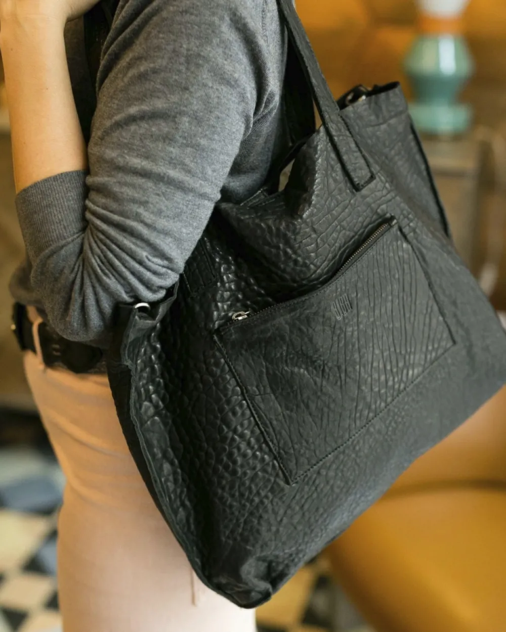 Bolso Shopper En Piel De Oveja Grabada Y 100% Ecologica. Dos Asas Y Bandolera Regulable Y Extraible. Bolsillo Delantero. Cierre De Cremallera. Referencia: Syl1L