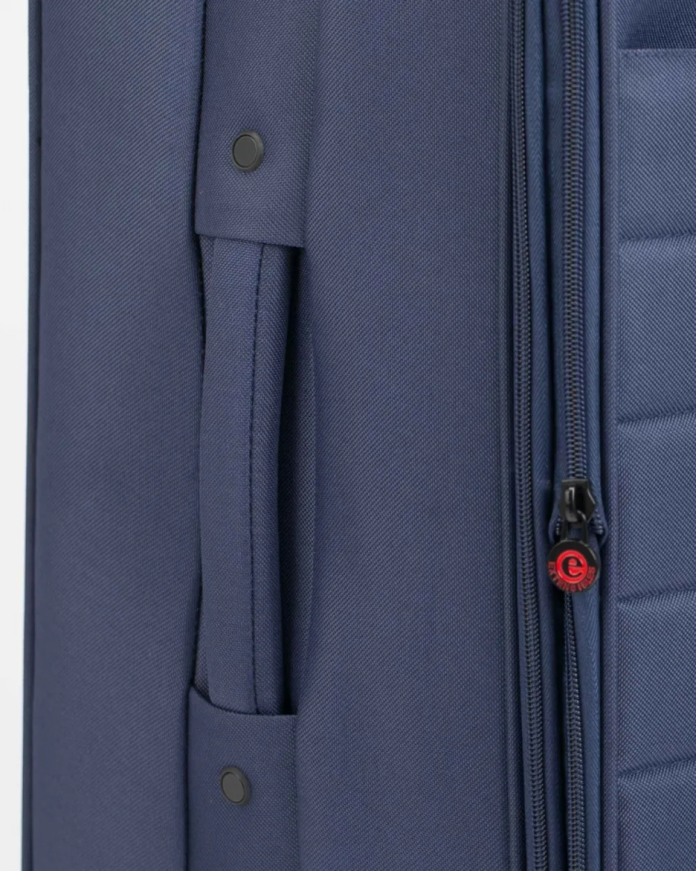Maleta Mediana (M) Blanda Con Estructura Resistente De Poliester Coninterior De Nylon. Trolley Expandible De Aluminio Y Mango De Pvc Y 4 Ruedas. Interior Forrado, Con Dos Compartimentos, Uno De Rejilla, Con Cierrede Cremallera Y Un Bolsillo Y Otro Con Cintas Elasticas De Sujecion. Una Asade Goma En La Parte Superior Y Cuatro Ruedas. Referencia: Lg24