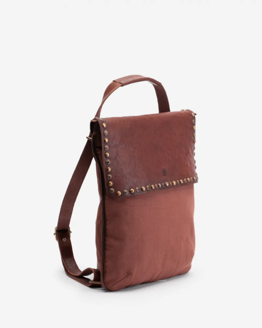 Bolso Mochilla De Algodon Efecto Vintage Con Detalles En Piel Natural Y Adorno Con Diferentes Tipos De Tachuelas En La Solapa. Bolsillo Con Cremallera En El Dorso. Forro De Algodon. Multiples Bolsillos En El Interior. Cierre Con Cremallera Y Solapa. Referencia: Whi1L