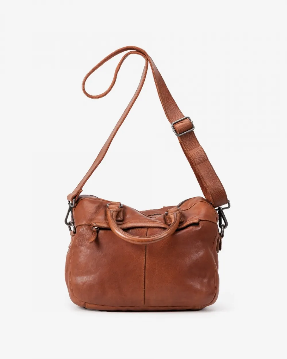 Maletin Mediano De Piel Vacuna Lavada Y De Curtici¢N Vegetal. Bandolera Ajustable Y Extra¡Ble. Dos Bolsillos Frontales, Uno Trasero, Todos Con Cremallera. Adem S, Bolsillo Interno Para Tablet. Referencia: Stu3L